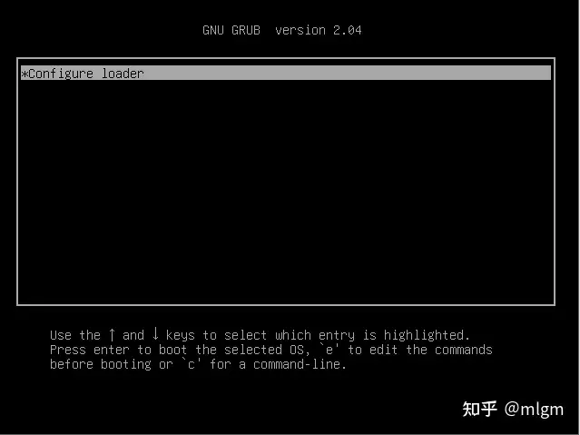 引导编译完成后,系统会自动跳回这个界面,并且会多出一行菜单“Boot the loder”,在这行菜单上回车。