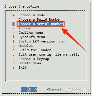 选择好后,又会返回上一级菜单,此时又会多出一些选项,先不管它。在“Choose a serial number”处回车。