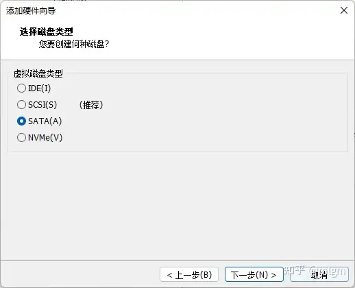 新建好虚拟机后,还要添加一块硬盘作为引导盘。添加硬盘的时候虚拟磁盘类型要选择STAT(A)
