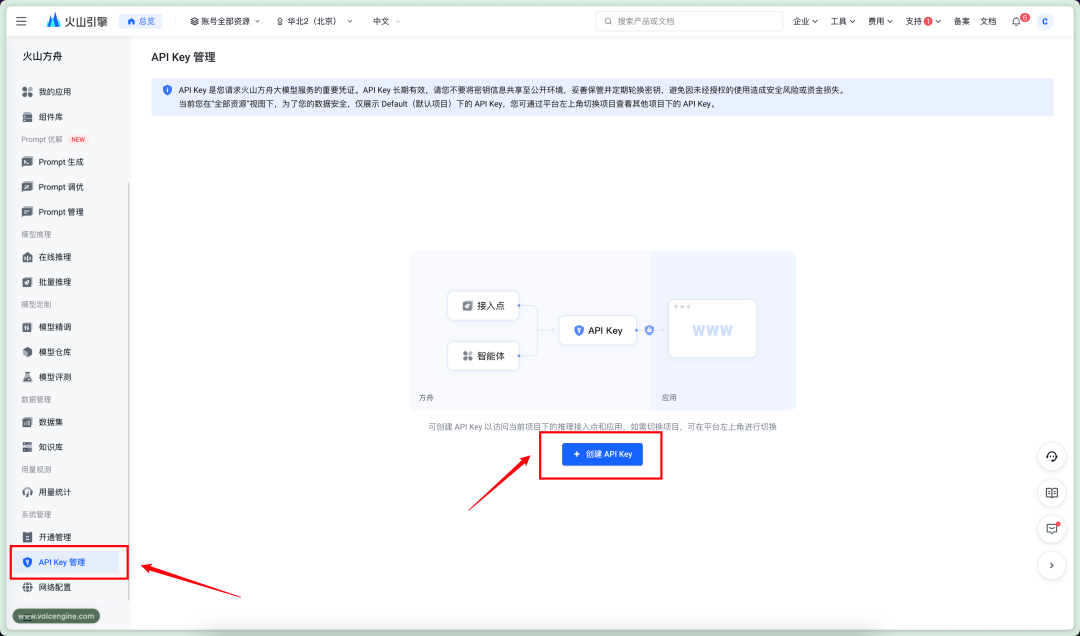 先要获取APIkey,后续我们需要将APIkey填入知识库配置中。