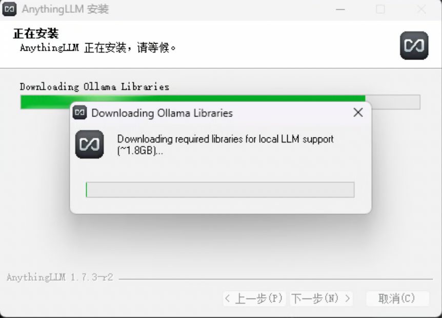 如果下载失败了,或者是你关闭这个下载窗口跳过了这一步,AnythingLLM还是会成功安装。