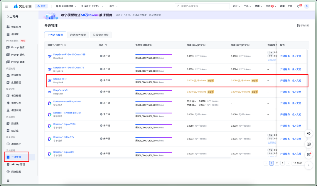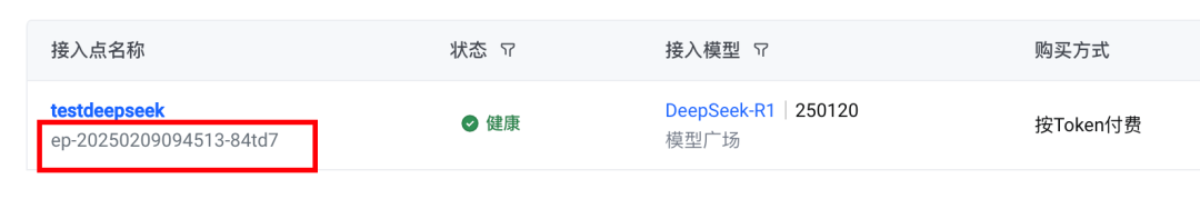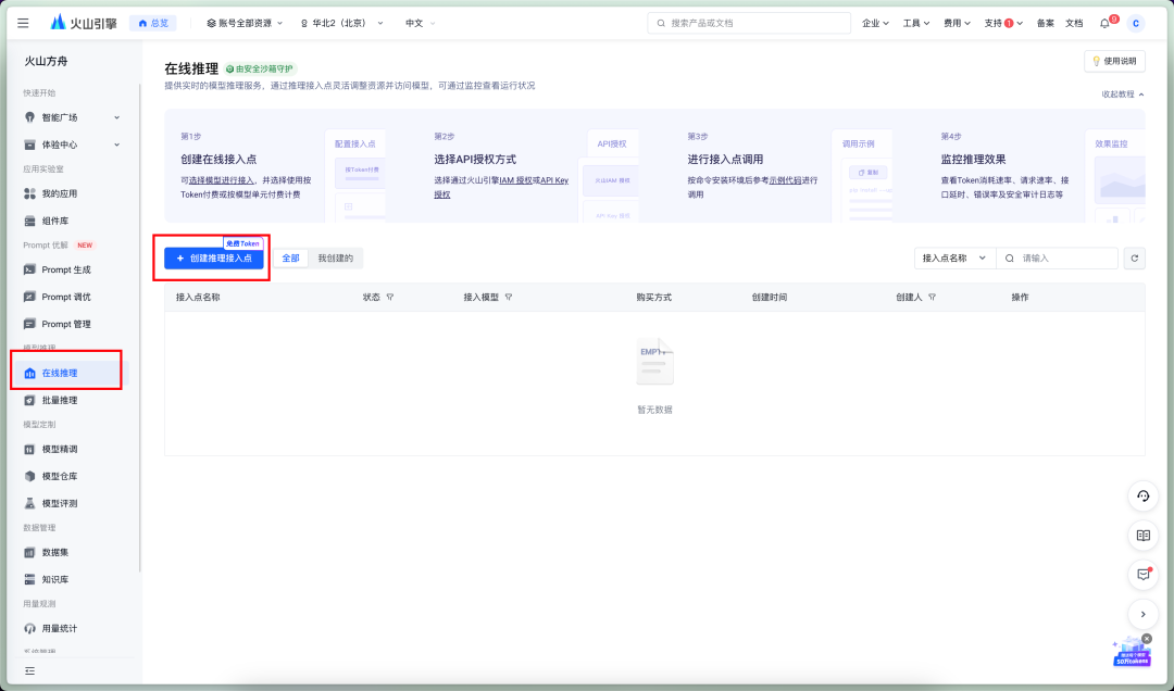 这里比较特殊,火山方舟模型名称需要填写接入点ID。我们需要去平台上创建接入点。