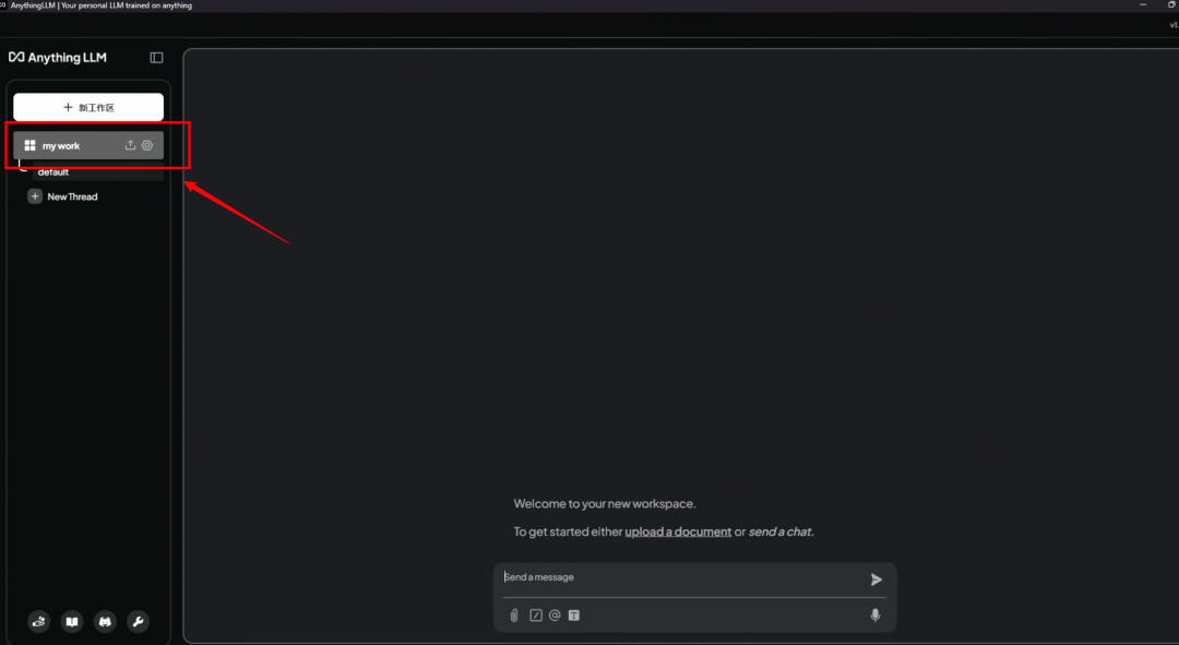 现在进入 AnythingLLM 的主界面了。它会用一段示例对话来教你怎么玩