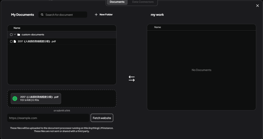 支持批量上传,支持Excel、world、txt等文件格式。这里我上传了一个《人体损伤致残程度分级》.pdf