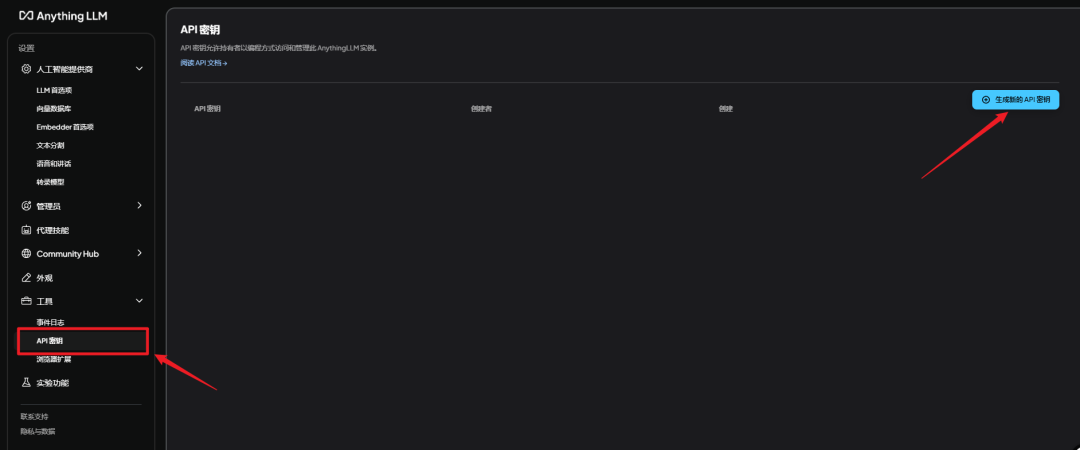 AnythingLLMkey填写你AnythingLLM中获取的秘钥。不是硅基流动或者是火山方舟的那个秘钥!!