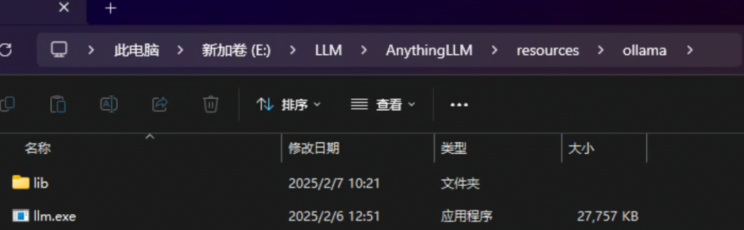 解压压缩包,并将解压后的文件夹放入你的安装目录AnythingLLMresourcesollama目录内。