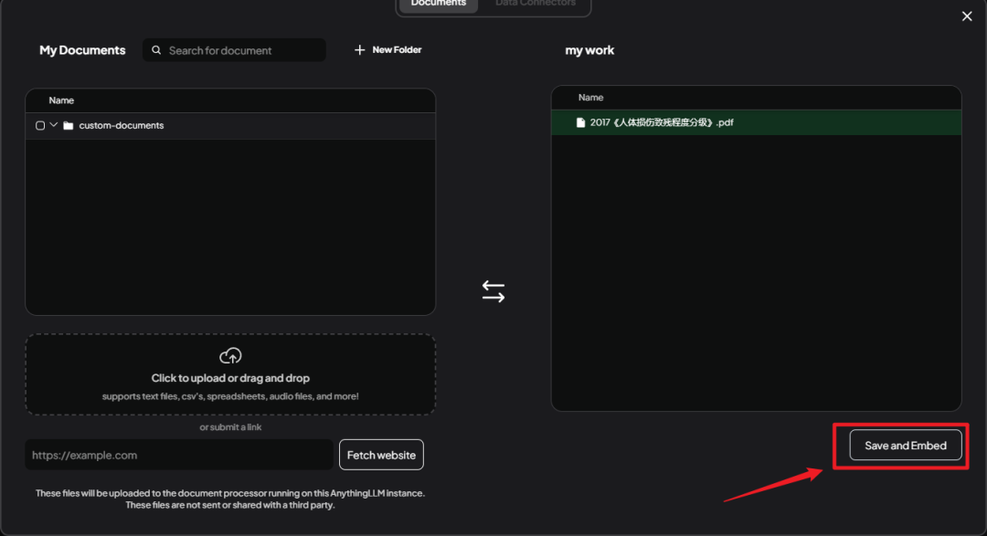 可以看到上传的文件转移至右边,这里点击Sace and Embed进行保存。