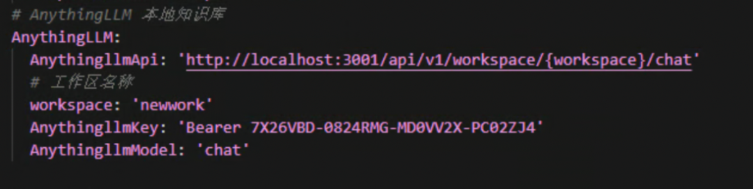 这里需要修改workspaceAnythingLLMkey这两个值就好。
