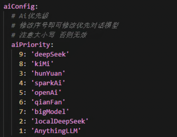 这里是ai接口执行的次序,前面的数字越小代表优先执行。默认设定是AnythingLLM优先。
