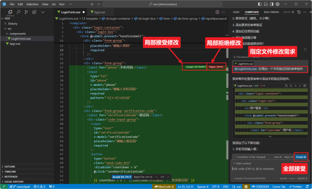 你还可以通过 @ 符号指定特定文件,为 Cursor 提供上下文参考。这样,Cursor 就能更好地理解你的意图,并据此修改或新增文件。