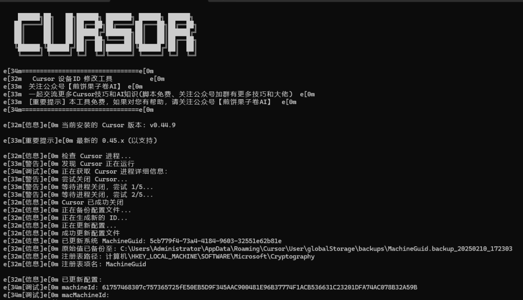 irm https://raw.githubusercontent.com/yuaotian/go-cursor-help/refs/heads/master/scripts/run/cursor_win_id_modifier.ps1 | iex