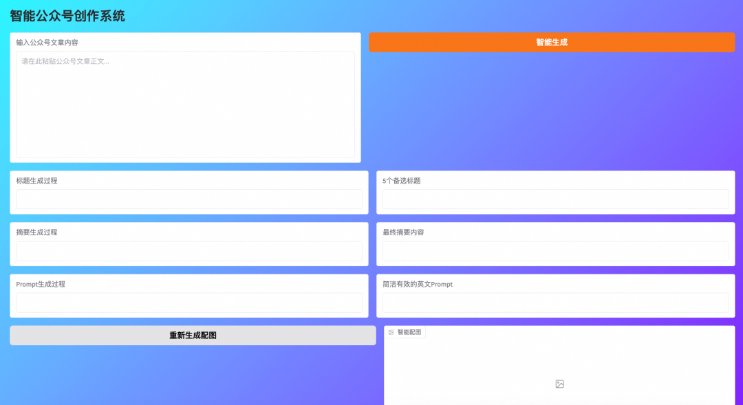 功能均可正常运行,生成的标题、摘要、Prompt 及配图符合预期。