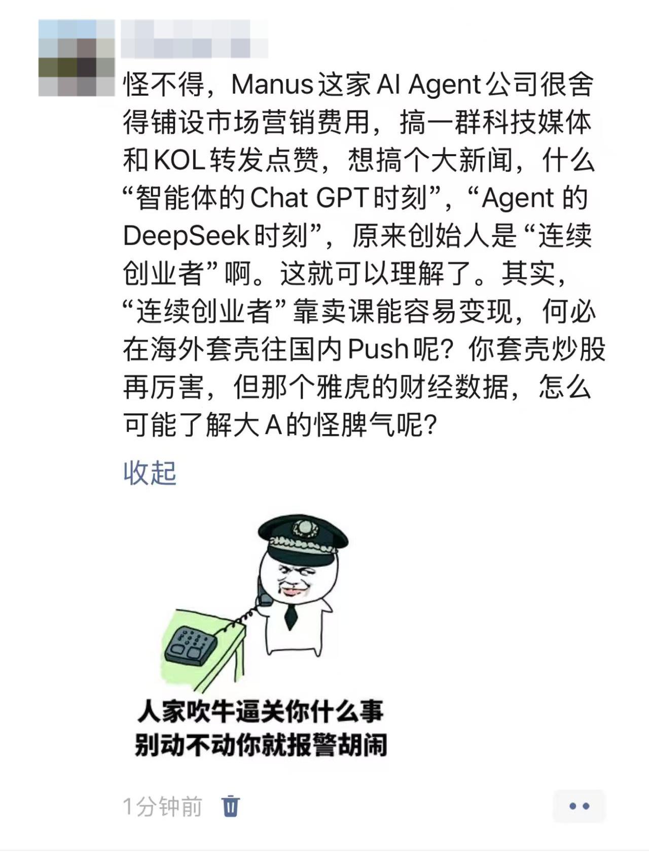 尽管声势浩大,科技圈内很快出现质疑声:Manus是否仅为海外技术的“本土化套壳”?其“自主性”是否被过度夸大?