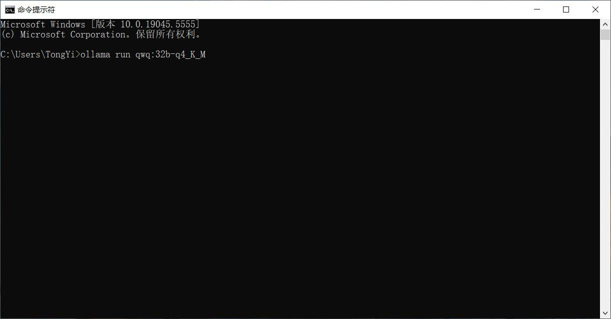 粘贴前面复制的命令(ollama run qwq:32b-q4_K_M):