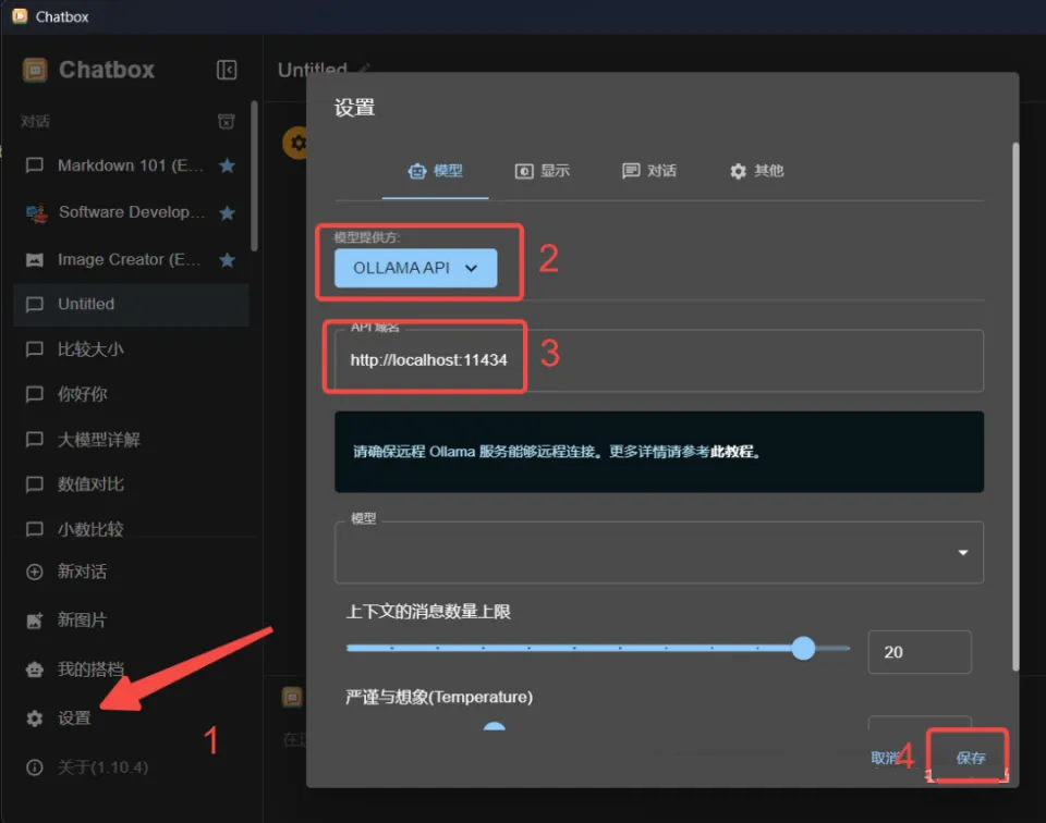 在上图 2 中的位置选择 OLLAMA API