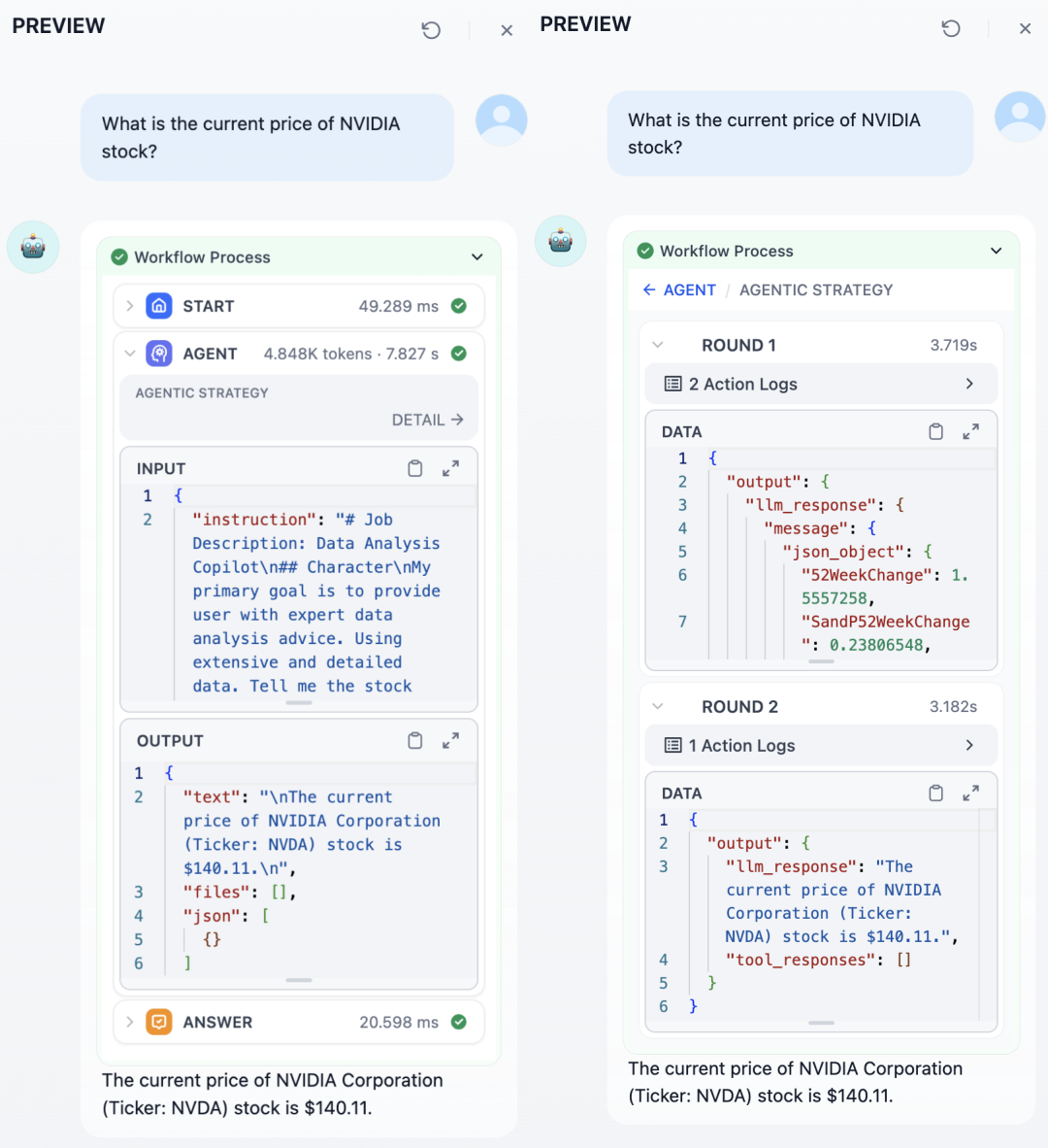 透明化的推理过程和实时的日志信息,极大地提升了 Agent 节点的可debug性和可解释性,帮助用户更好地理解和优化工作流。