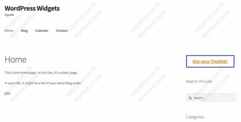 如果您的主题在主页上还具有特殊的小工具区域,则可能需要使用这些区域在站点的各个部门,相关内容列表或媒体(例如欢迎人们访问该站点的视频)中导航。