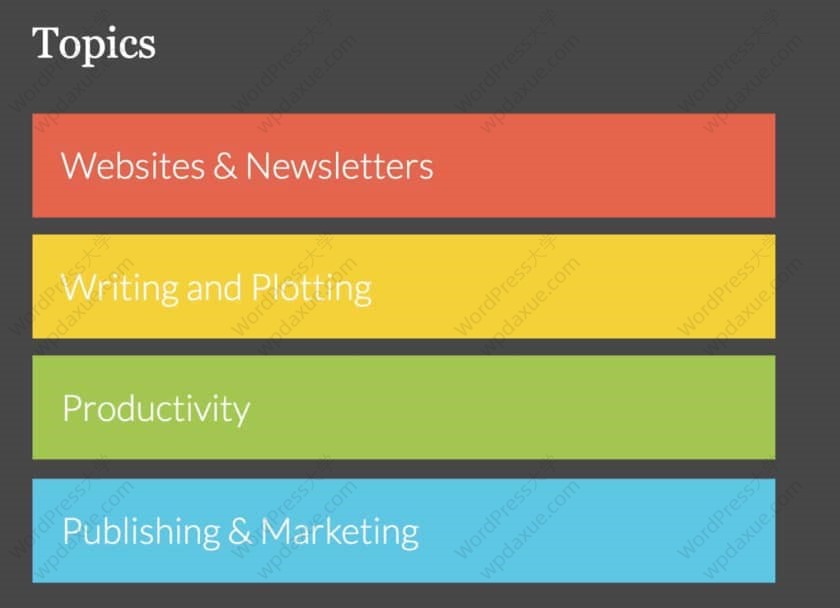 或者,您可以使用内置的分类小工具来显示站点中的分类列表,或者使用标签云小工具来使人们可以轻松访问标签档案。