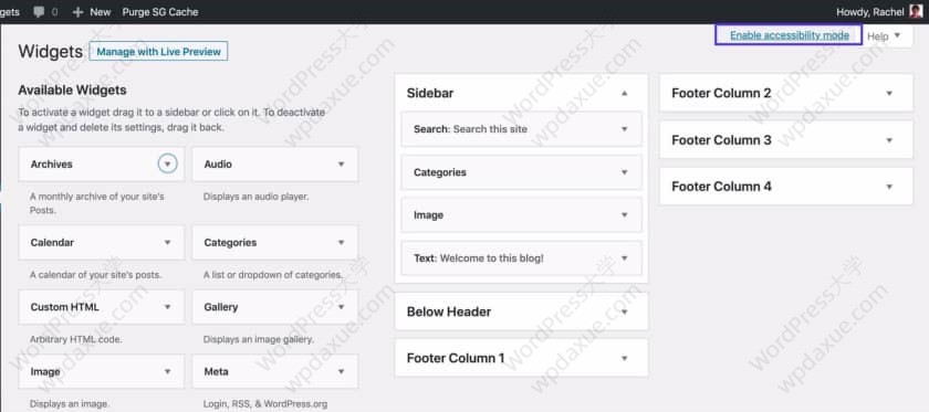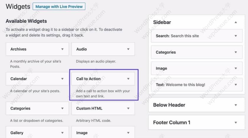 如果切换主题,并且新主题具有不同的小工具区域,则新主题中不适合新主题的小工具区域的小工具将自动被WordPress移至“非活动小工具”列表。