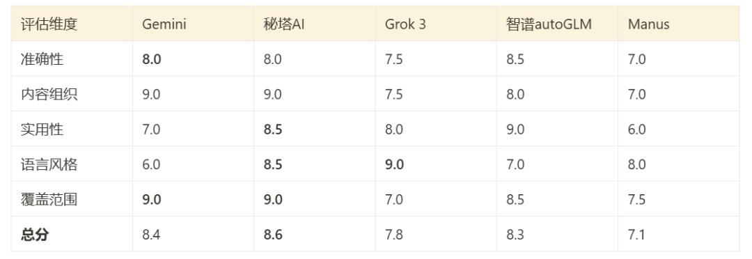 测试局限性:本次对比仅基于单一任务。像 Manus 这样强调任务流和多格式交付能力的工具,其优势可能在其他类型的任务中才能完全体现。此外,用户界面、成本、API 集成能力等也是实际选择中需要考虑的因素。