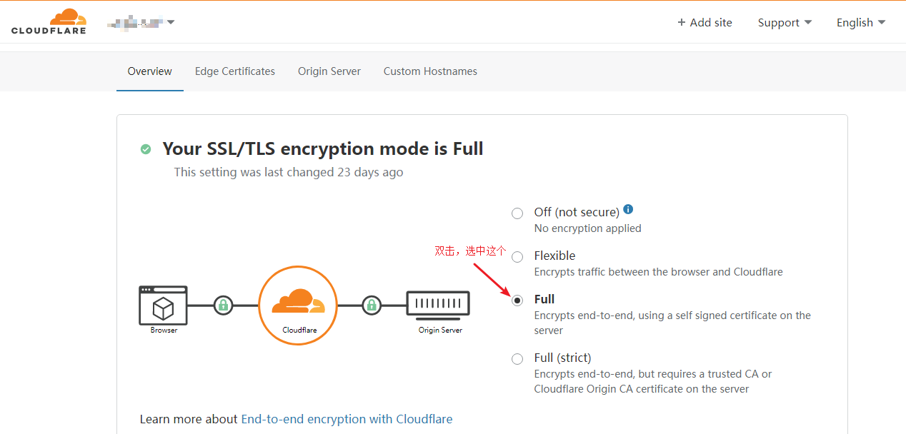 4.8 开启 Cloudflare 的 CDN 保护,开启 SSL/TLS 的 Full 模式