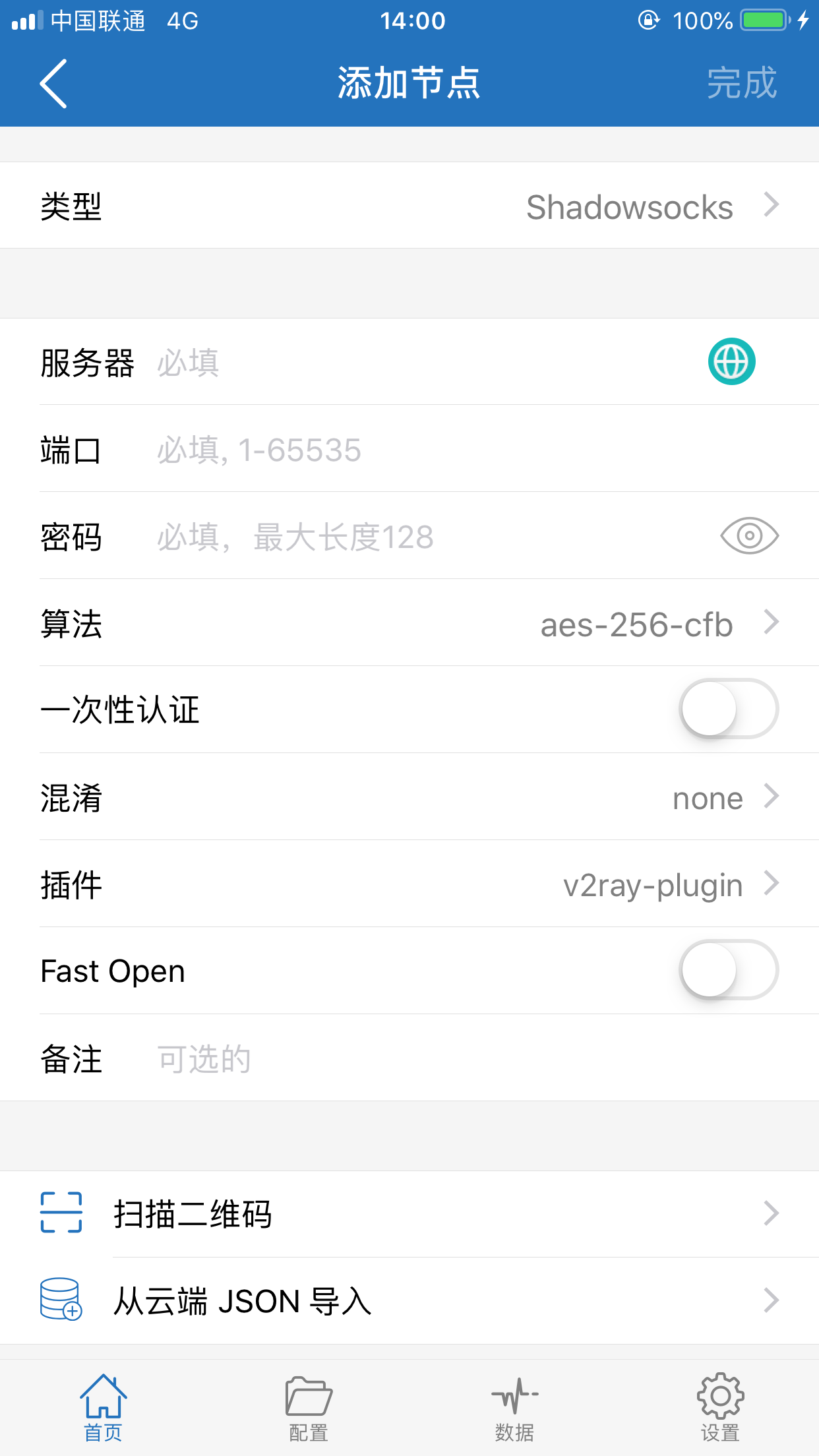 请使用 Shadowrocket,也就是俗称的小火箭,添加如下配置使用。<br/>填写服务器,端口,密码,选择算法,插件选择 v2ray-plugin