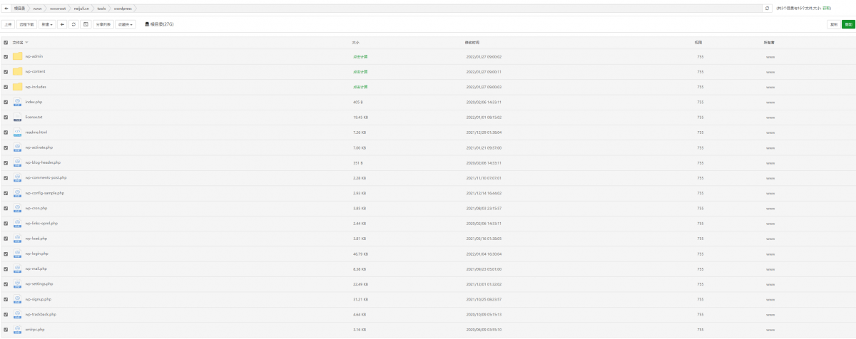 之前下载的源码和空的wordpress文件夹就可以删除了。